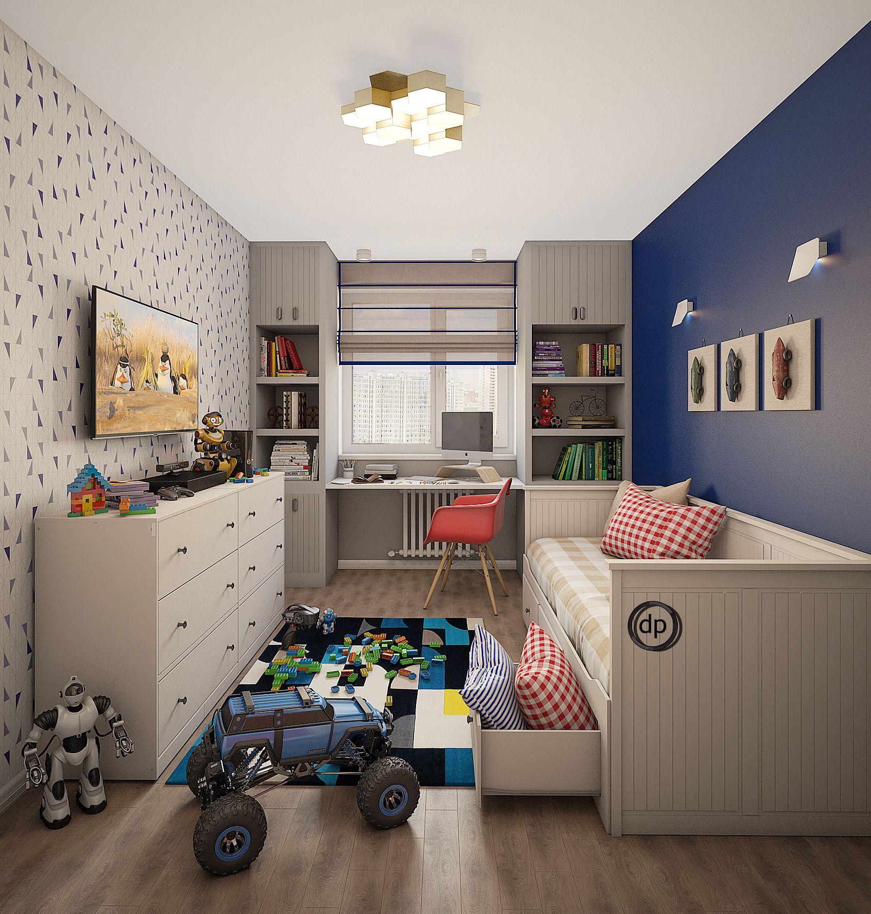 — Личные фотографии и рисунки: размещайте их на стенах или создайте уголок для выставки художеств, чтобы ребенок чувствовал свою связь с пространством.