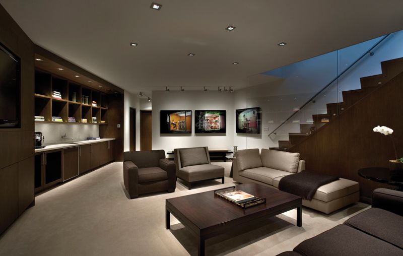 Гостиная — это зона отдыха и общения, здесь важно создать теплую и приветливую атмосферу. Она должна быть достаточно яркой для общения, но при этом не слишком яркой, чтобы не вызывать дискомфорта.