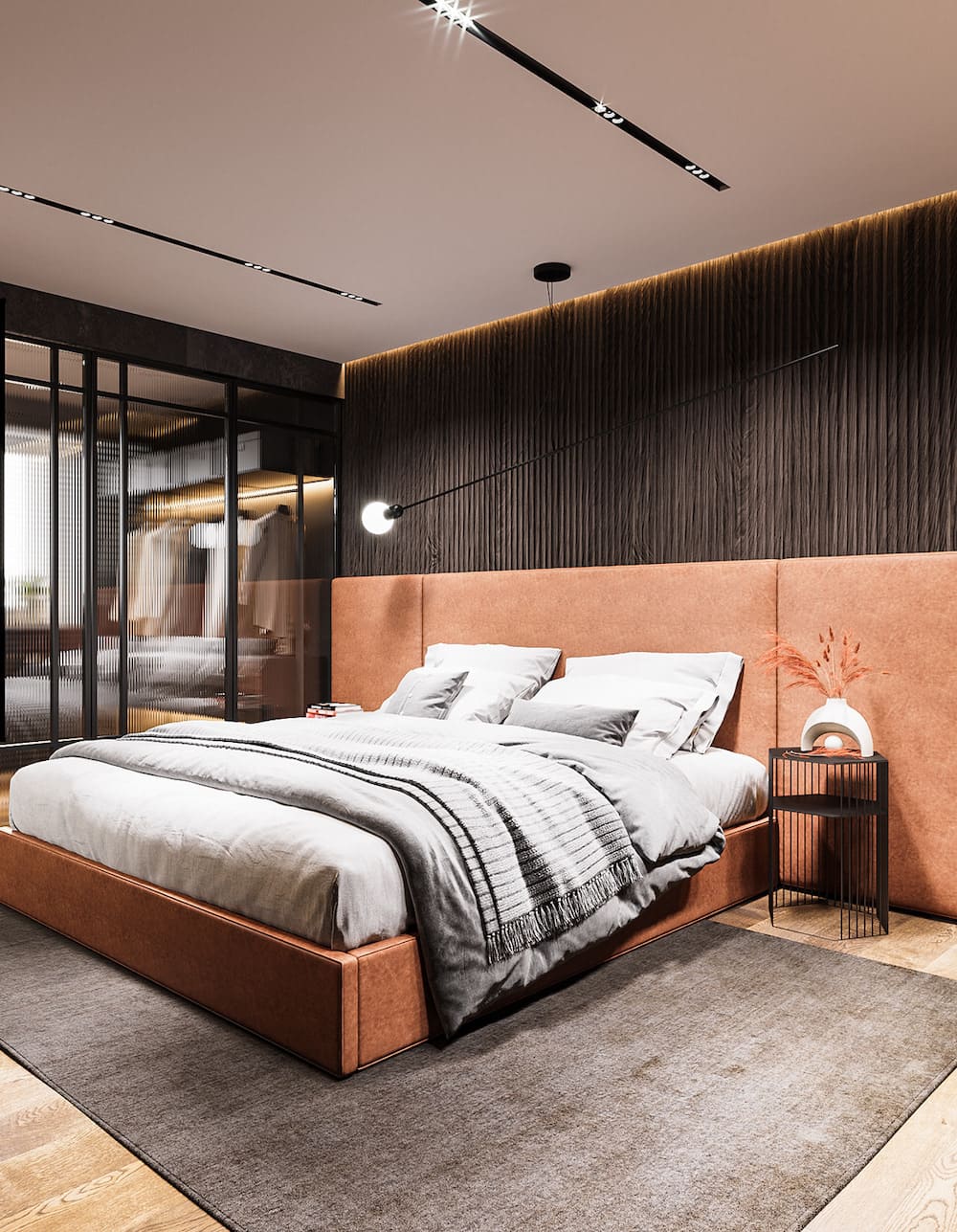 Спальня — это место для отдыха, поэтому освещение должно быть мягким и расслабляющим: